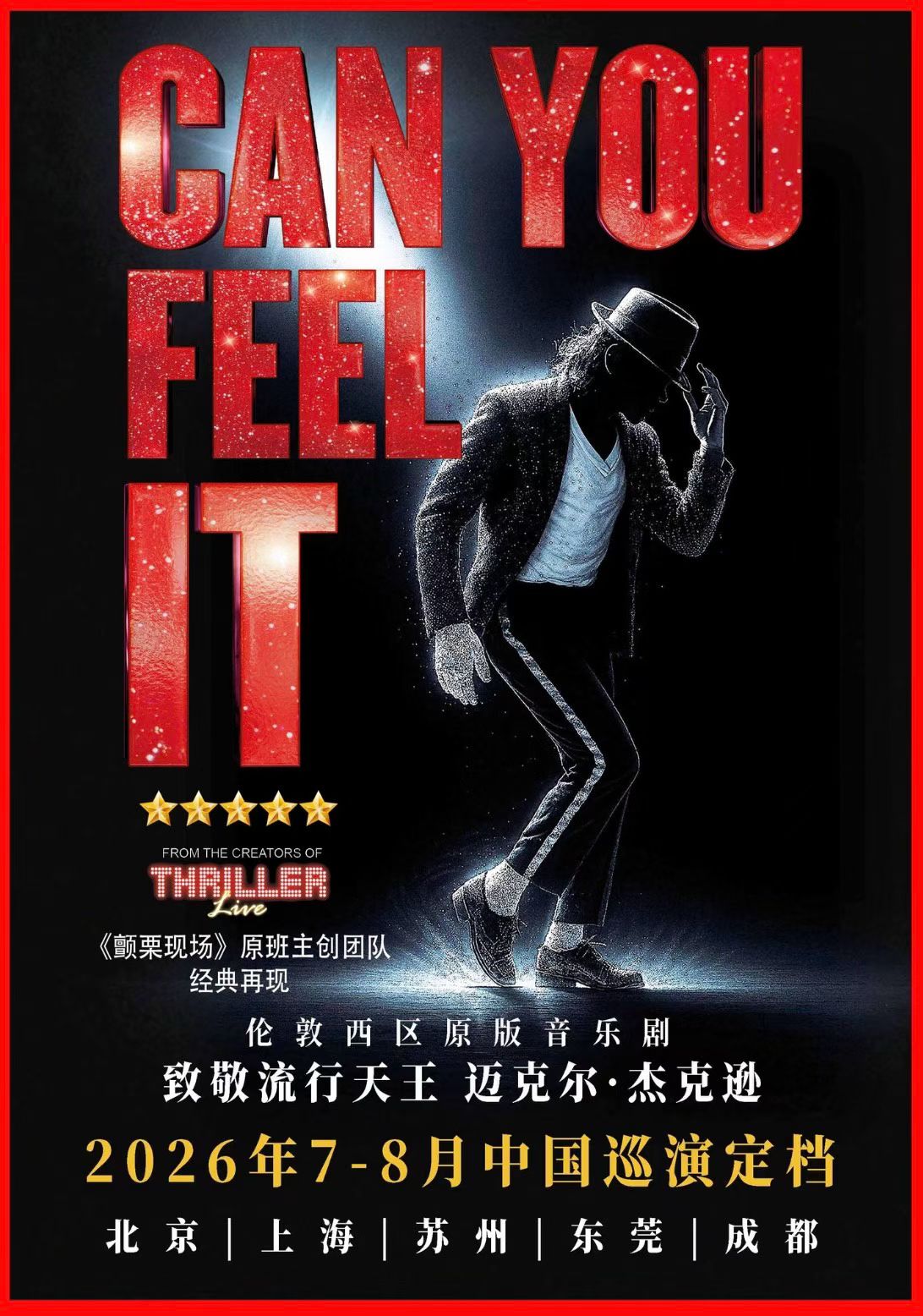 致敬流行音乐之王——迈克尔·杰克逊 伦敦西区原版音乐剧《颤栗现场》(Thriller Live)升级版音乐剧《你能感受到吗》(CAN YOU FEEL IT)定档啦,2026年7月下旬开启,敬请...